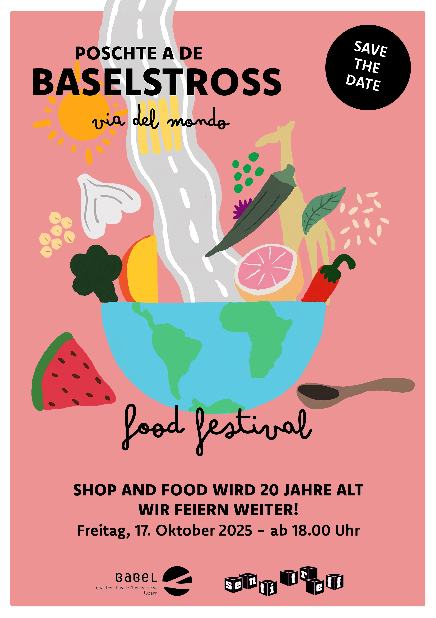 Vor 20 Jahren haben der Sentitreff, die HSLU und der Verein BaBeL das Projekt «Shop&Food» lanciert – als wirtschaftliche Fördermassnahme für die kulturell vielfältigen Läden an der Baselstrasse. Seither entdecken Gruppen auf kulinarischen Entdeckungsreisen entlang der Baselstrasse gemeinsam Lebensmittelläden und erleben, wie Essen verbindet. Anlässlich des Jubiläums lädt das BaBeL-Quartier am 17. Oktober im Sentitreff zu einem Food Festival ein. Es erwarten euch feine Häppchen aus aller Welt, spannende Produkte aus verschiedenen Ländern und Gespräche mit Ladenbesitzenden von der Baselstrasse.
