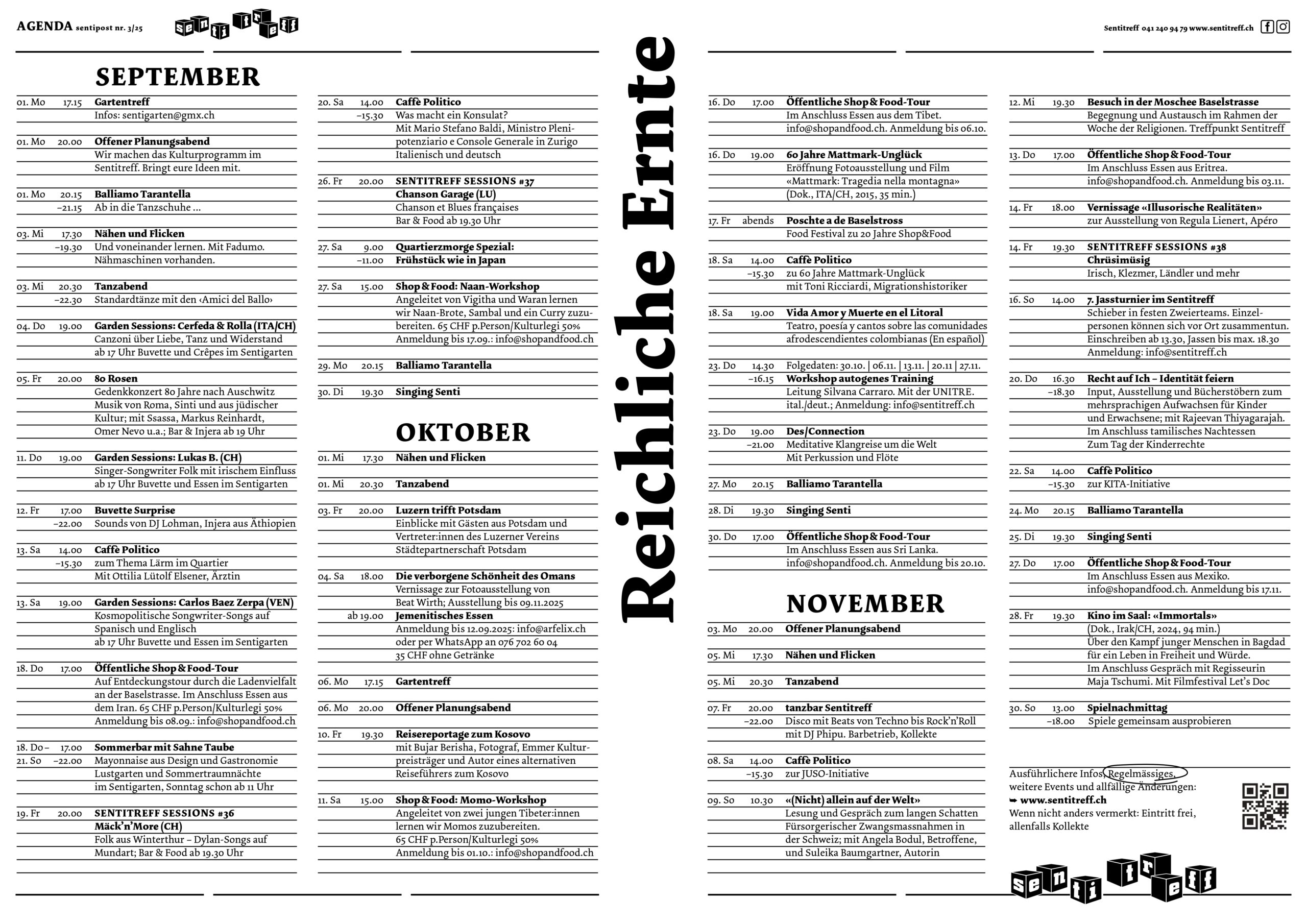 Es läuft einiges hier. Konzerte, Filme, Lesungen, Ausstellungen, Essen, Podien, Märkte, Jass- und Pingpongturniere und vieles mehr. Multikultur halt.